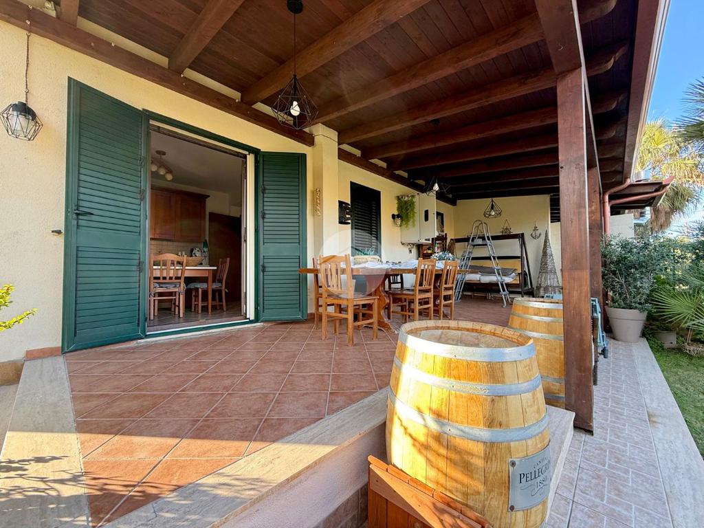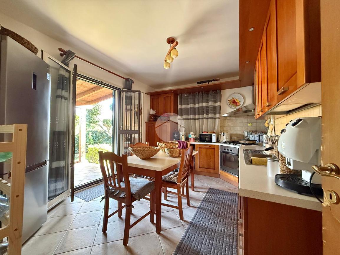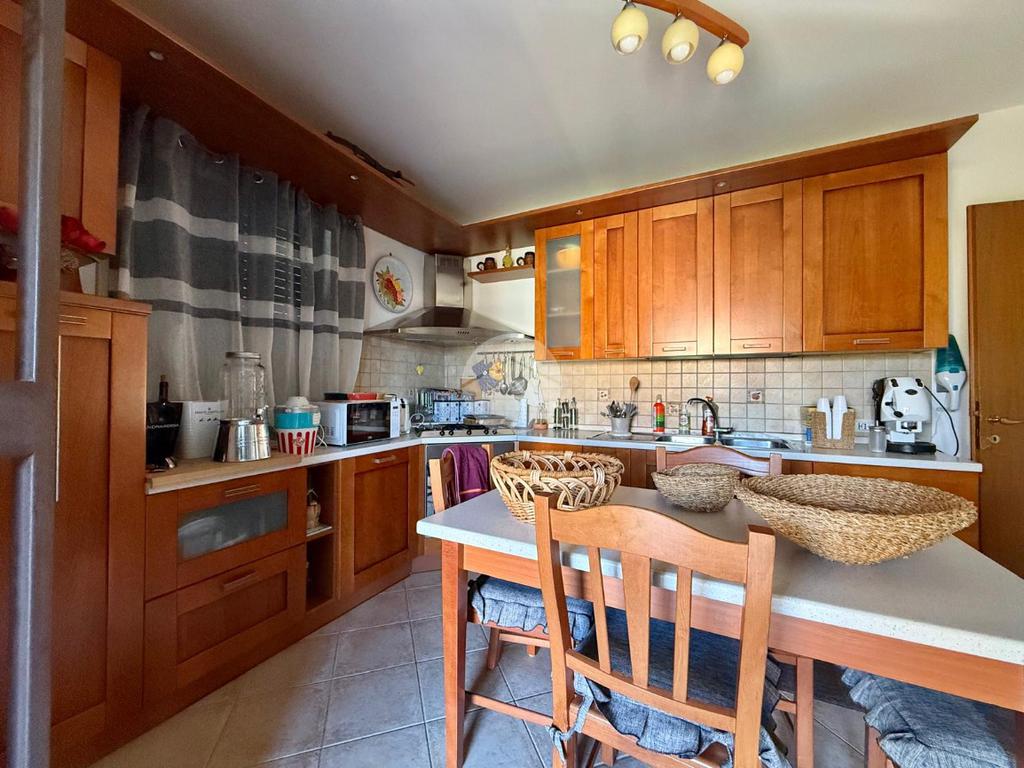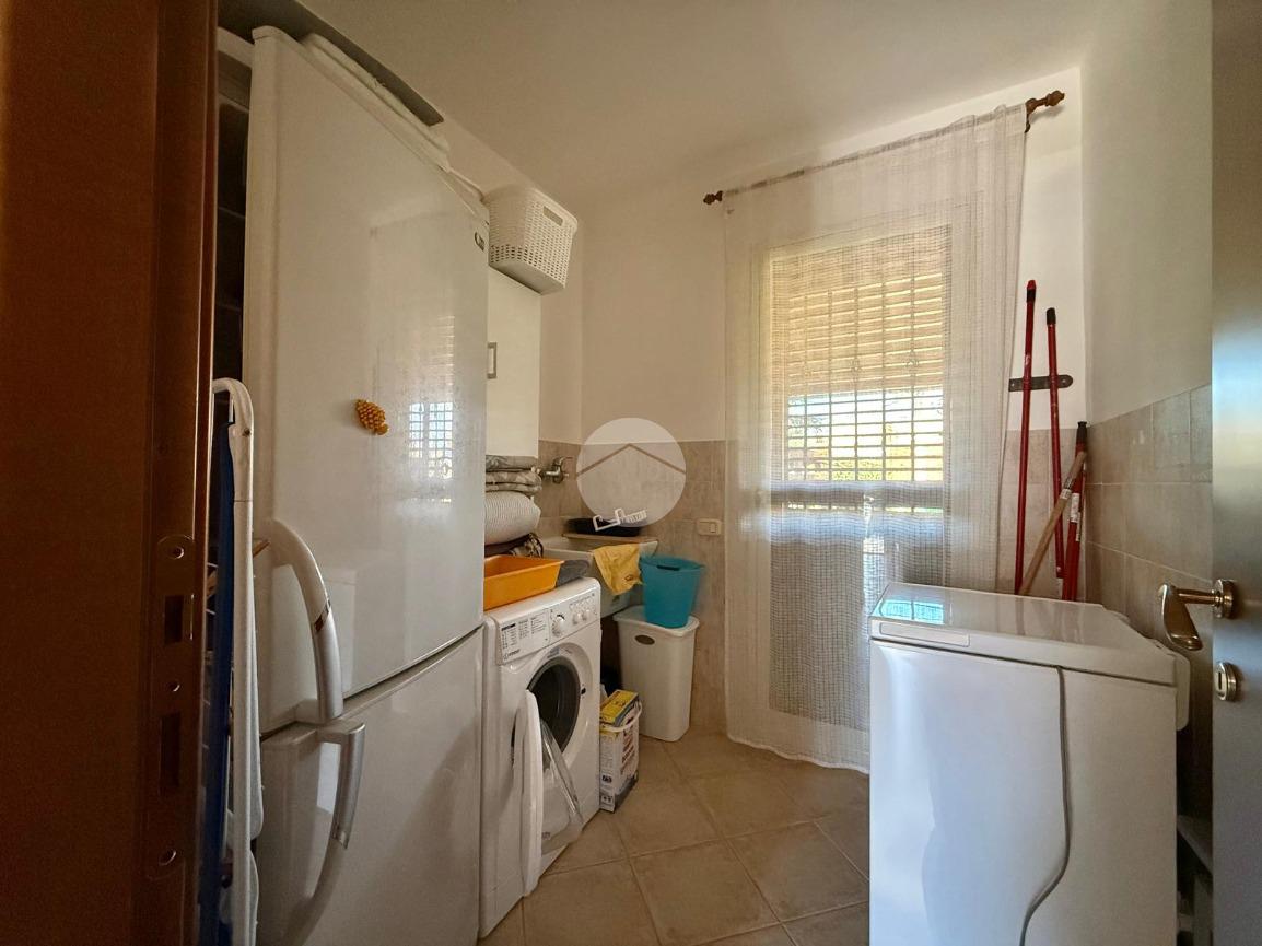 Al piano terra troviamo l’ingresso su un luminoso salone, un disimpegno che conduce a una comoda lavanderia, un ampio bagno con vasca e una cucina con accesso diretto a una veranda esterna, collegata allo spazio esterno privato.