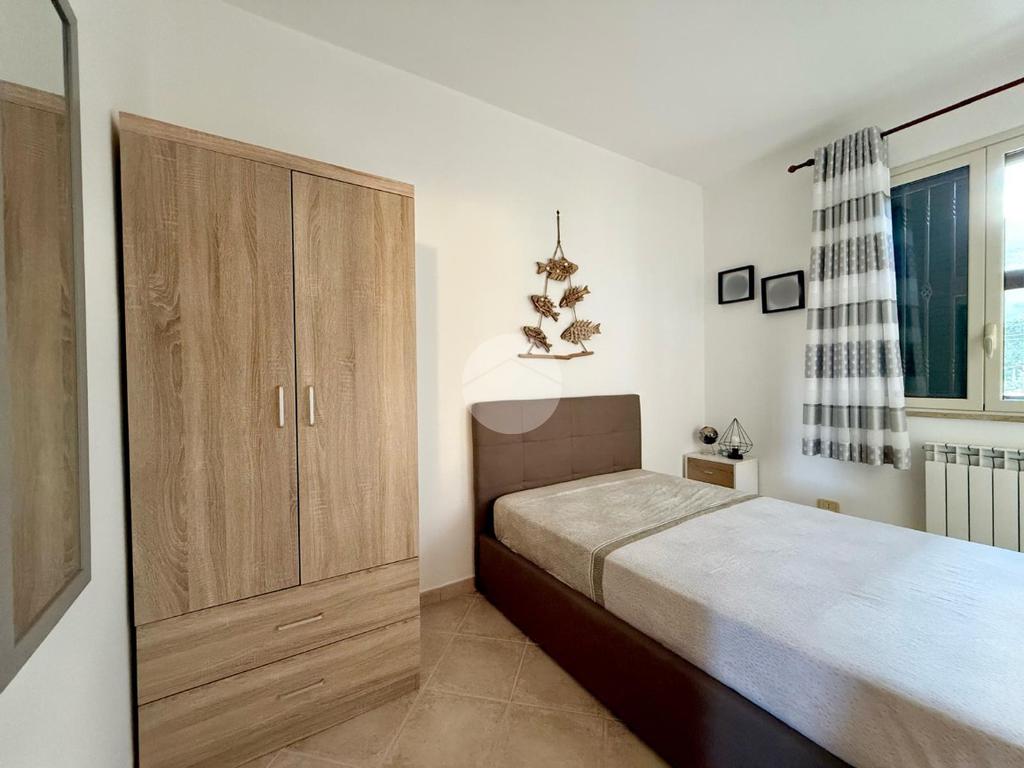 La zona notte, al piano superiore, è composta da due camerette, una camera matrimoniale con veranda privata e vista panoramica, e un secondo bagno con doccia.