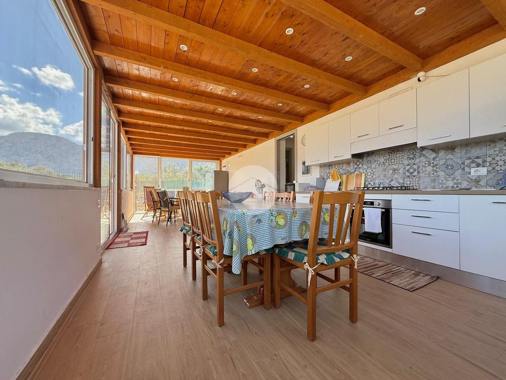 La zona giorno è il cuore della casa: un ampio open space con cucina e soggiorno, caratterizzato da tetto in legno a vista, ampie vetrate che garantiscono grande luminosità naturale e una splendida vista sul giardino e sulla piscina. L’atmosfera è accogliente e moderna, perfetta per momenti di relax e serenità.