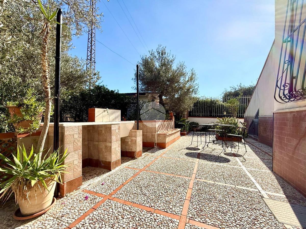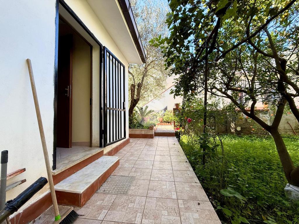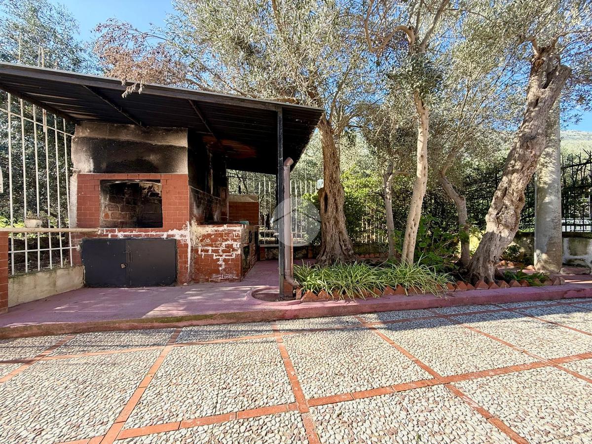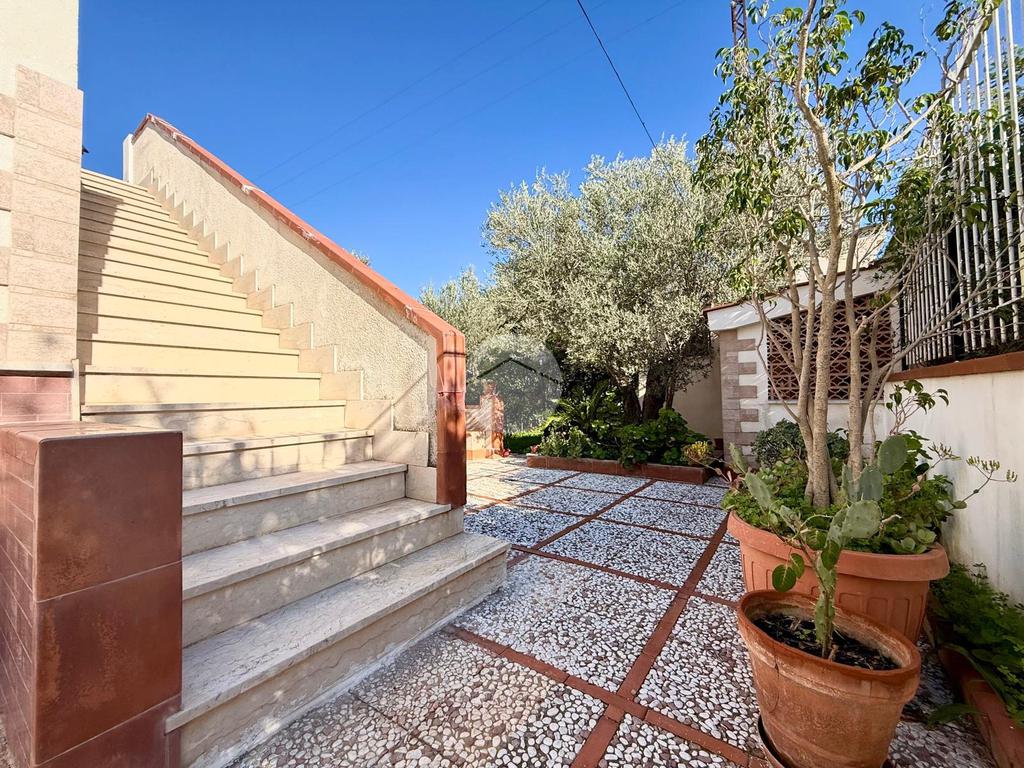 La villa è composta anche da un ampio giardino pianeggiante, sfruttabile in diversi modi. Salendo da una scala in muratura, si accede al terrazzo panoramico, un punto che offre un buon affaccio sul contesto circostante e una vista panoramica sul mare.