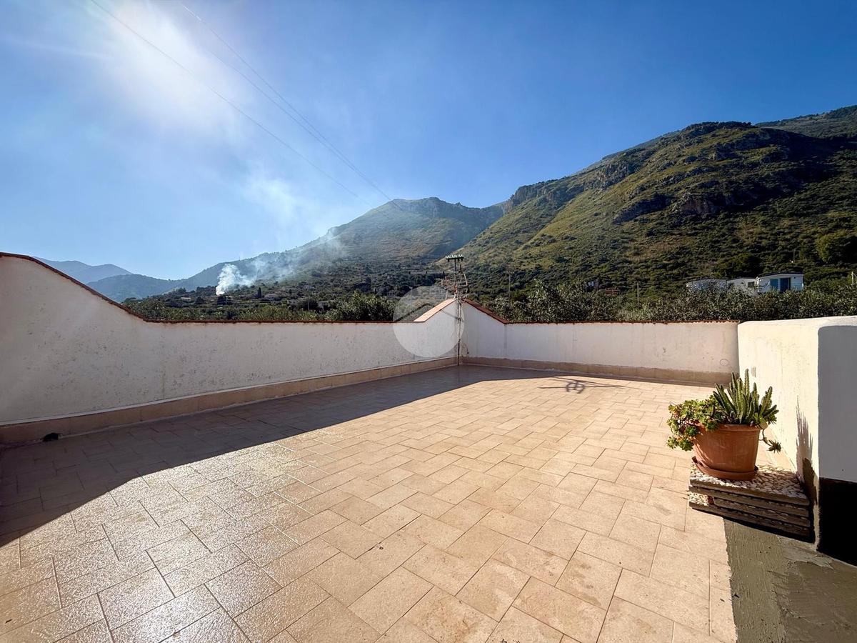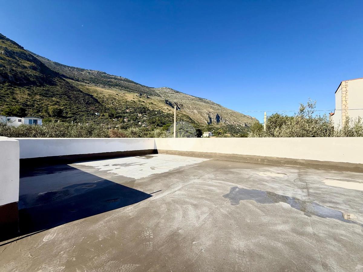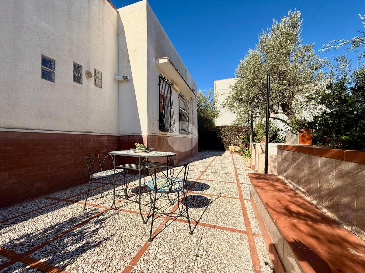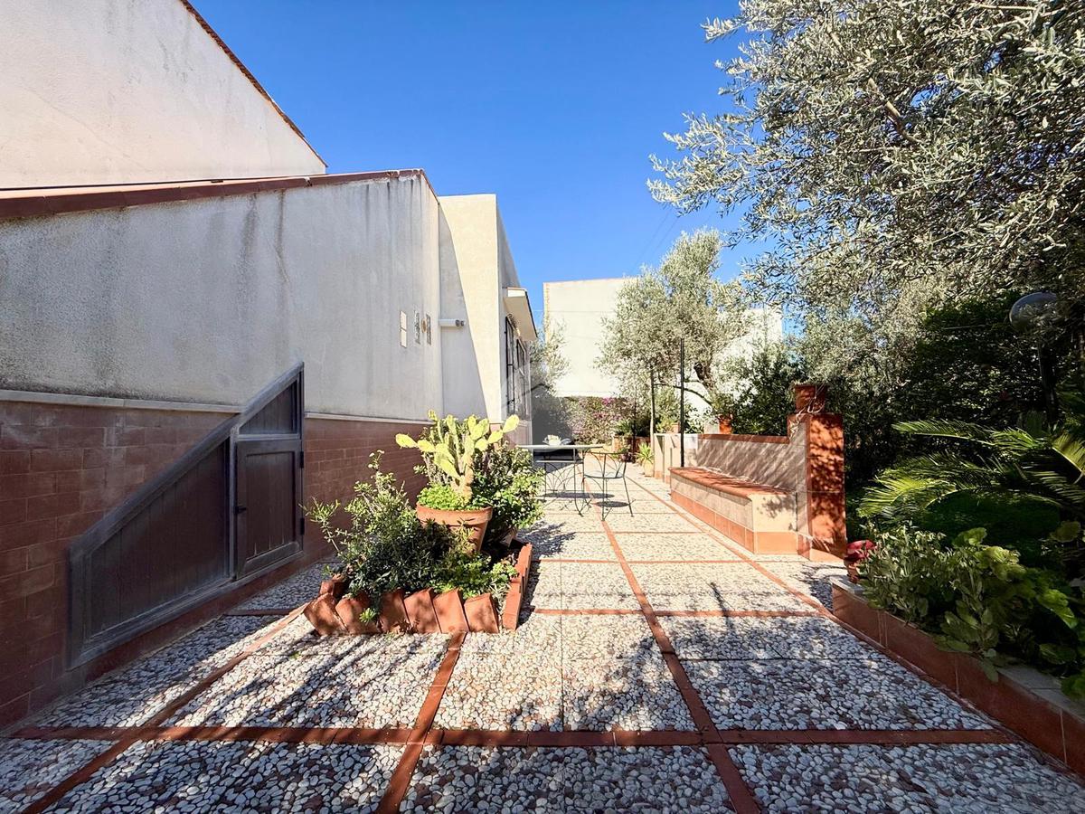 La villa è composta anche da un ampio giardino pianeggiante, sfruttabile in diversi modi. Salendo da una scala in muratura, si accede al terrazzo panoramico, un punto che offre un buon affaccio sul contesto circostante e una vista panoramica sul mare.