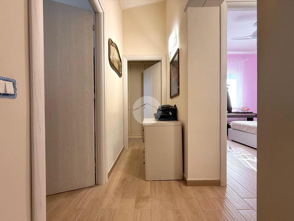 Dal soggiorno d’ingresso si sviluppa un corridoio che collega la zona notte, completata da un ripostiglio, una pratica cabina armadio, un secondo bagno con doccia e due camere da letto ben rifinite, entrambe caratterizzate da buone metrature e luminosità.