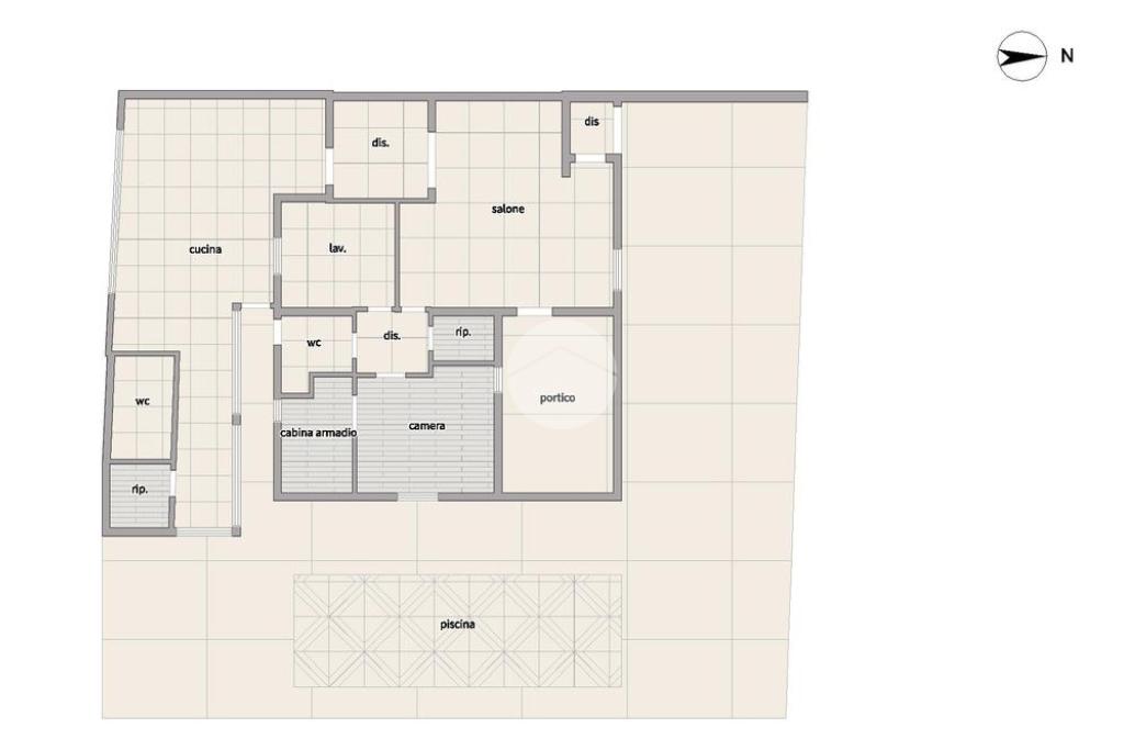 L’abitazione si sviluppa interamente su un unico livello e dispone di un spazio esterno curato, dove trovano posto una piscina privata, una zona conviviale ideale per cene all’aperto e un’area dedicata al relax. Sono inoltre presenti un bagno di servizio e un comodo ripostiglio, perfetti per attrezzature.