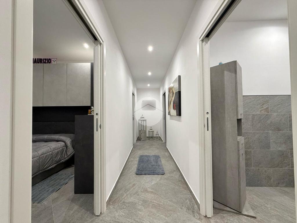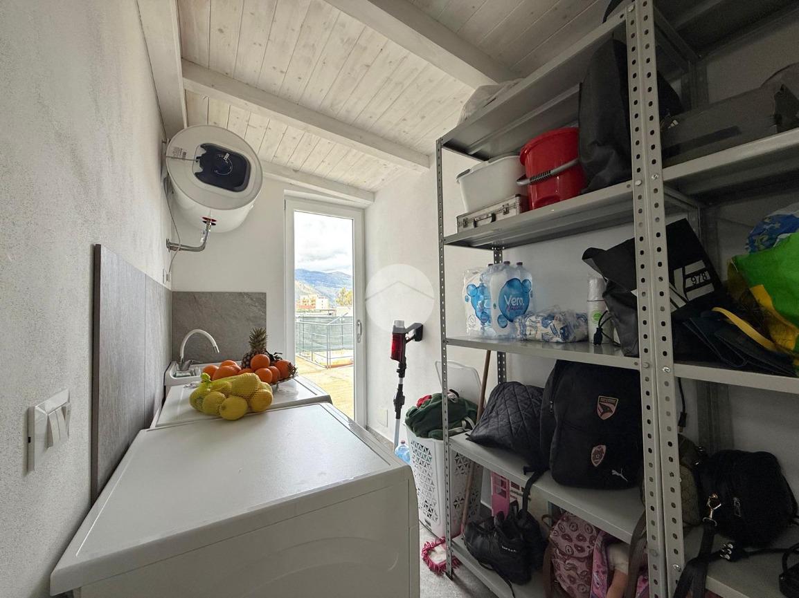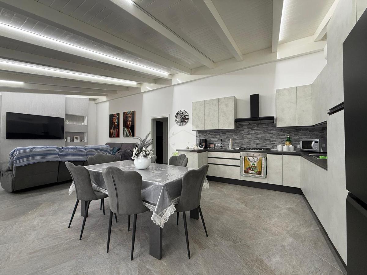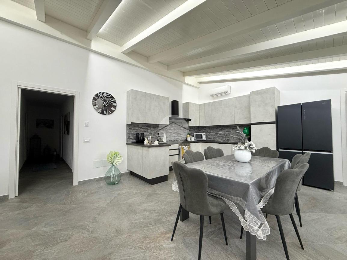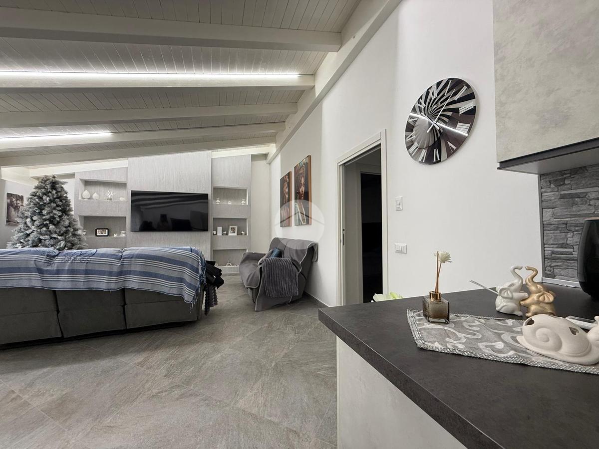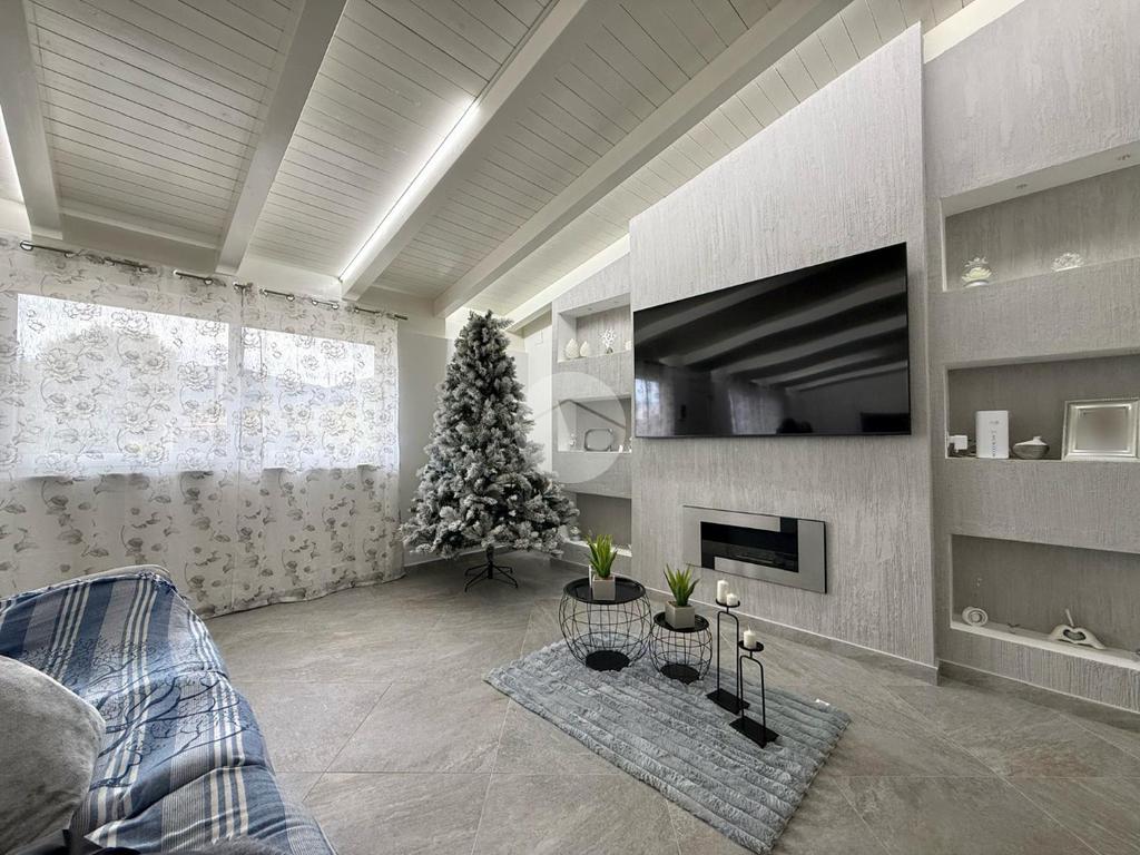 L’accesso all’abitazione conduce a una ampia cucina-soggiorno, particolarmente luminosa e valorizzata dalla presenza di travi a vista, che conferiscono calore e carattere all’ambiente. Un corridoio di disimpegno distribuisce in modo razionale gli ambienti della zona notte, composta da due camere, una camera matrimoniale, un ampio bagno con doccia e una lavanderia separata.