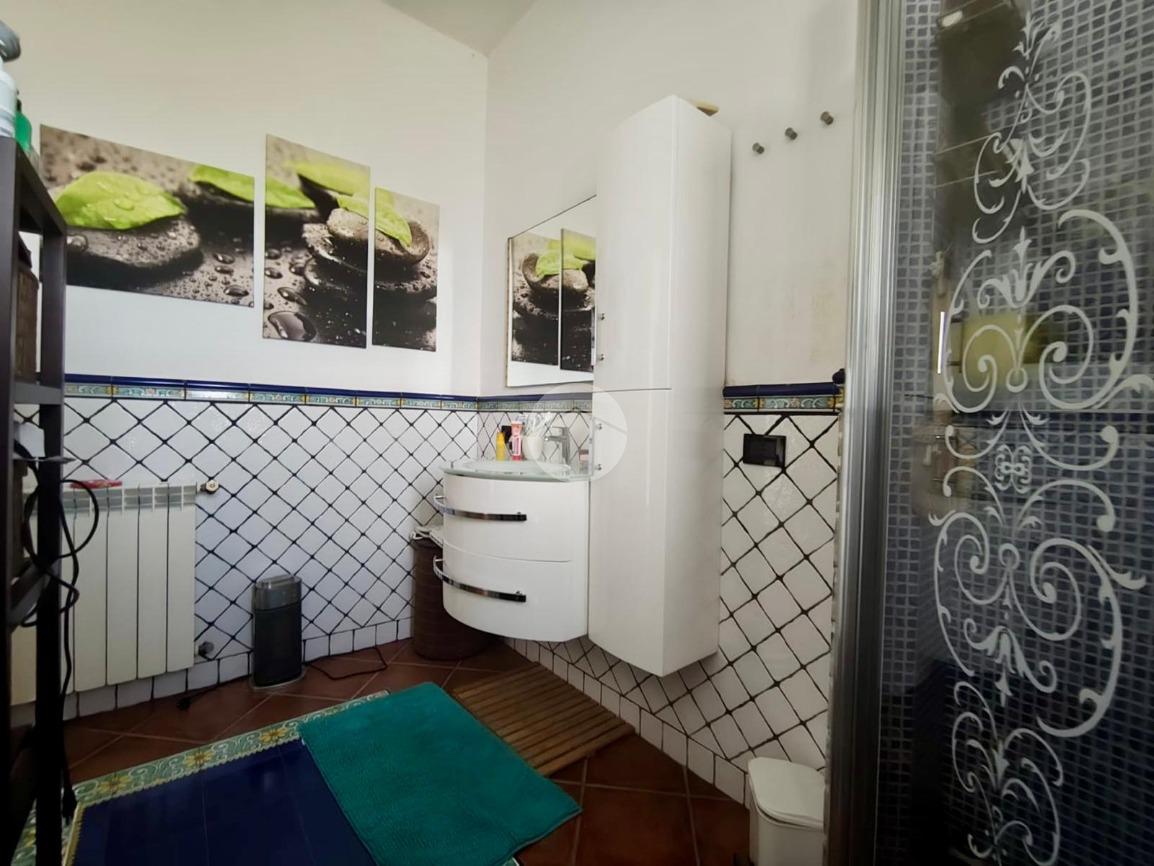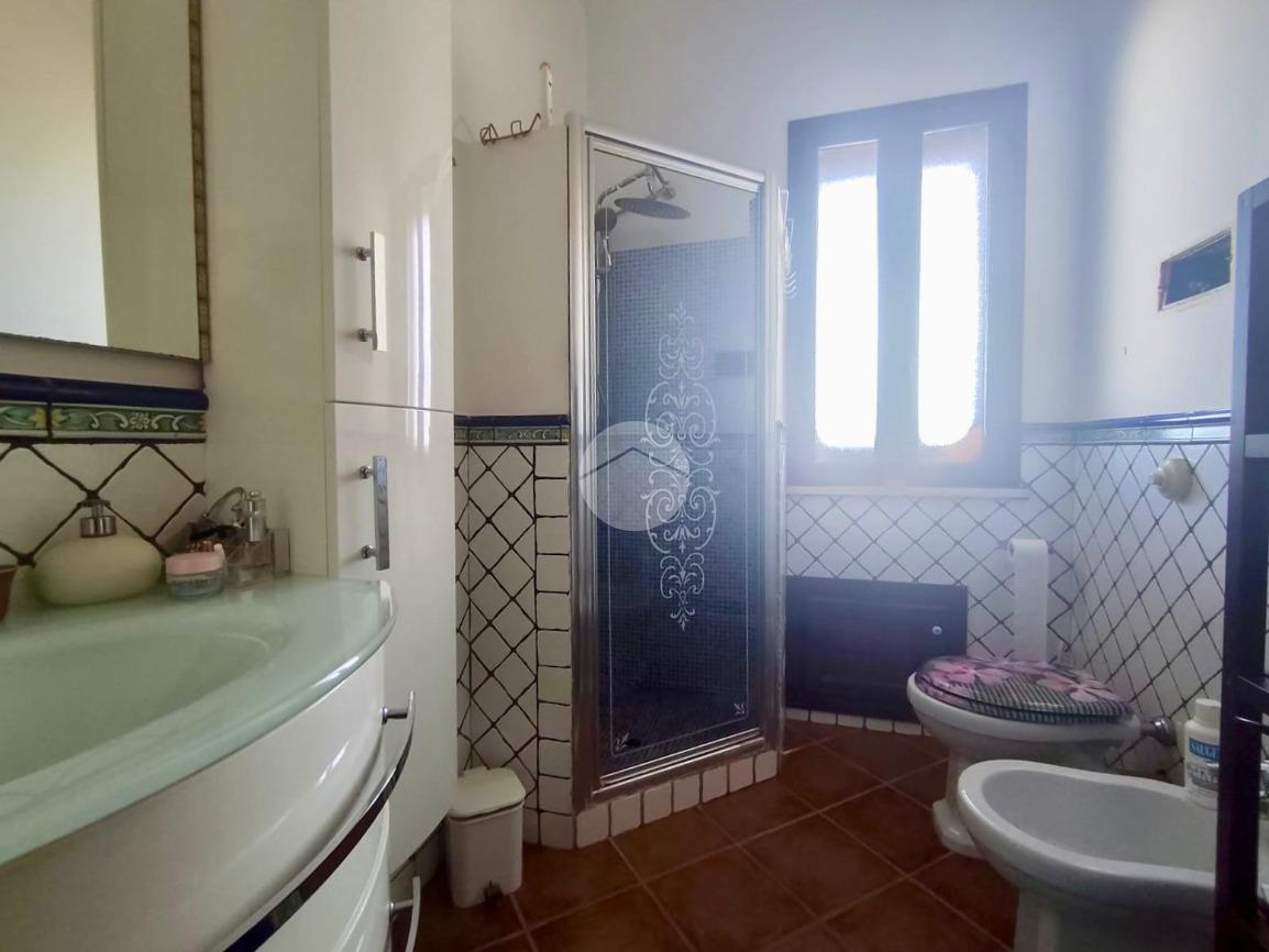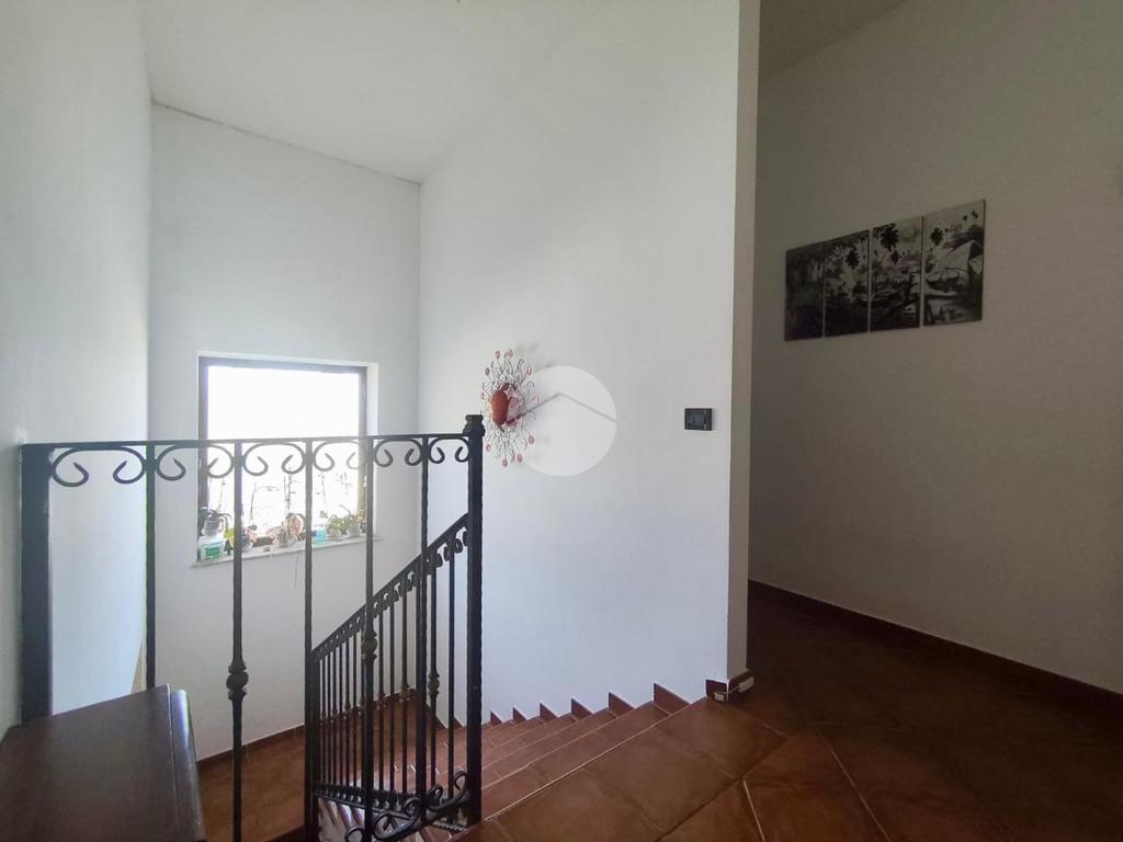 Al piano superiore troviamo la zona notte, composta da due camere da letto, di cui una con bagno privato con vasca, una cameretta e un secondo bagno con doccia, rifinito con piastrelle decorate. Tutti i bagni sono finestrati. Le due camere principali dispongono di terrazzo privato con splendida vista panoramica, che spazia dal mare alla montagna.