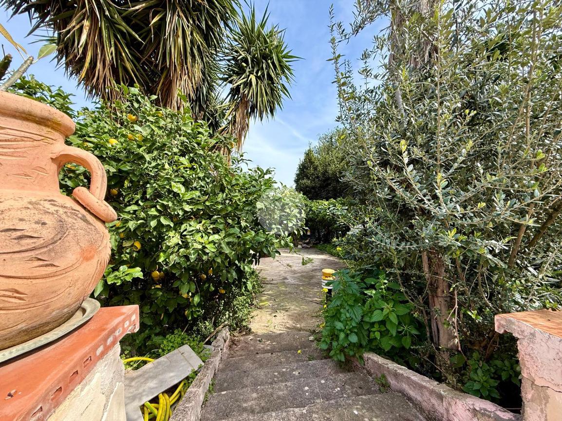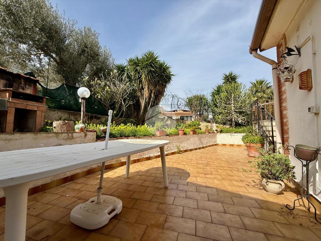 La proprietà è circondata da un giardino privato con alberi da frutto – limoni, mandarini, arance vaniglia e brasiliane – e dispone di comodi posti auto interni. Gli spazi esterni sono ben distribuiti e collegati tra loro: dal terreno si accede sia alla casa principale che alla dependance, oltre a un piccolo spiazzo e a un’ulteriore area verde che crea continuità e armonia tra le diverse zone. In quest’area è stato realizzato anche un forno a legna in muratura, perfetto per pranzi e cene all’aperto in compagnia.