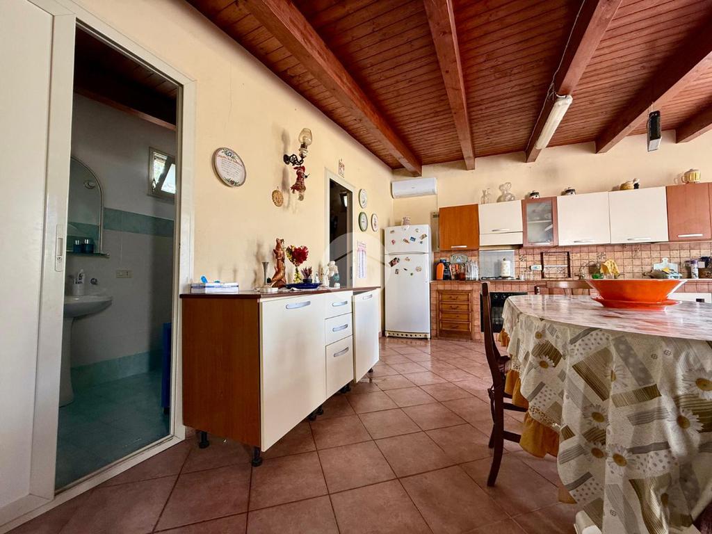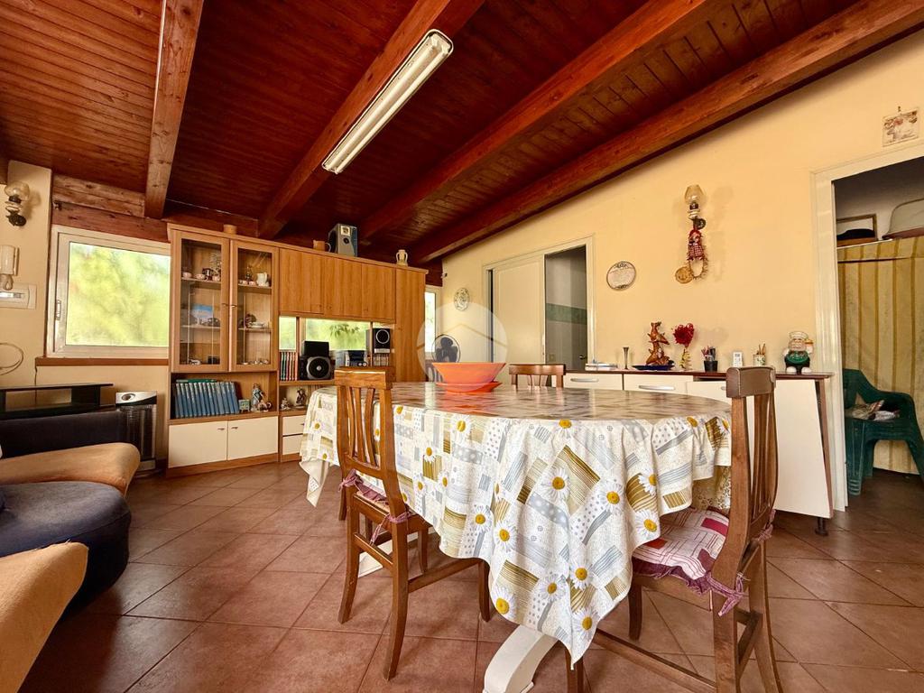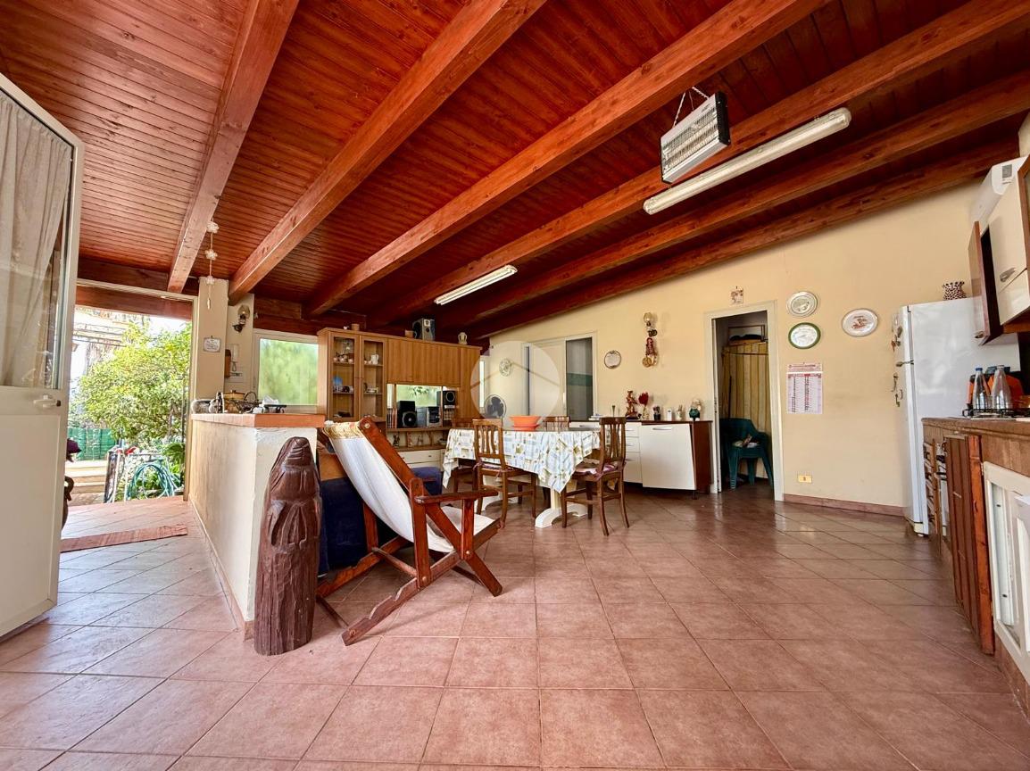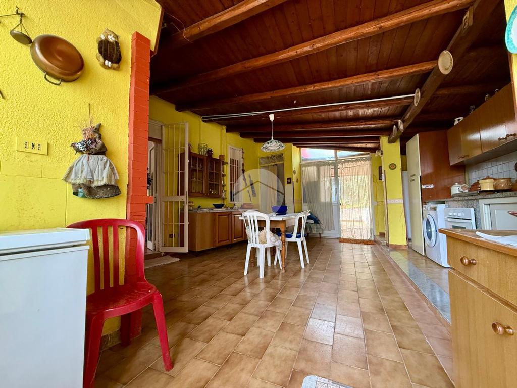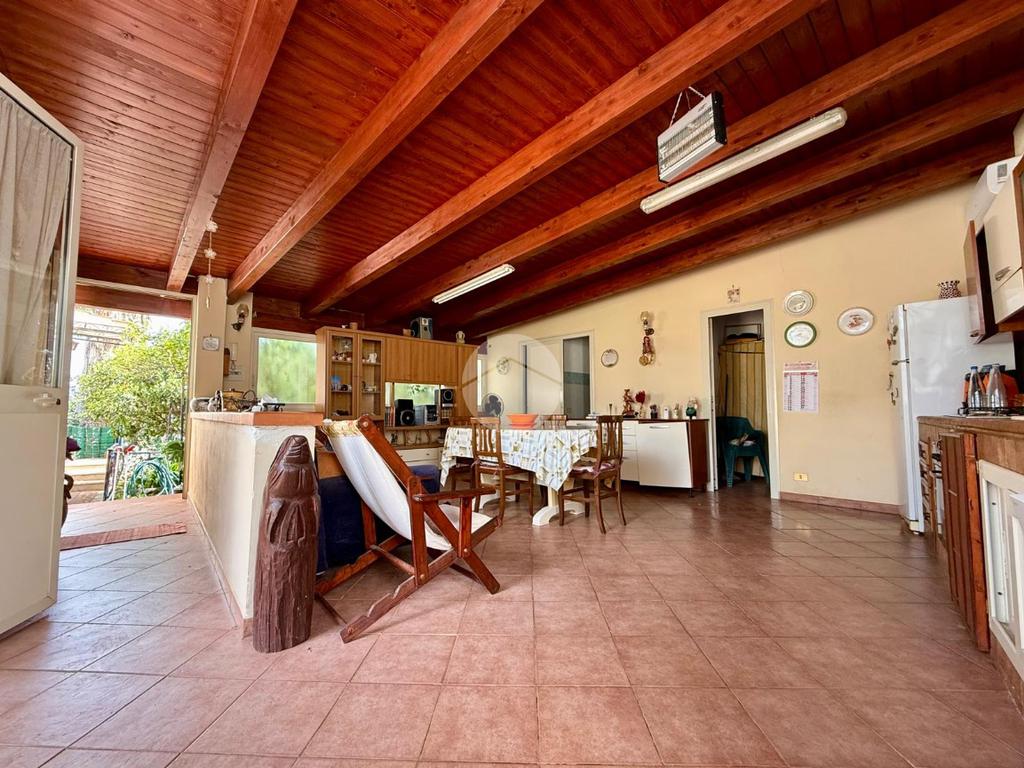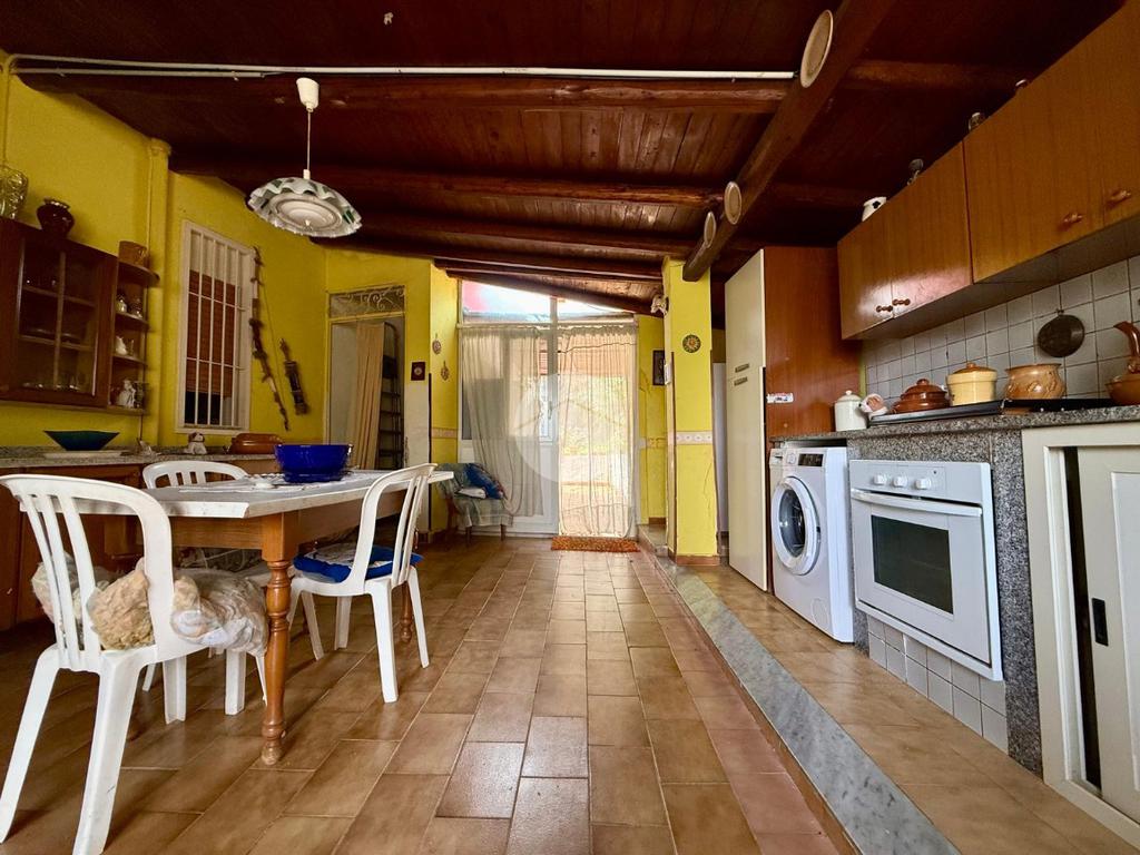La casa principale si apre su un luminoso salone d’ingresso che conduce alla zona notte, composta da due camerette, una camera matrimoniale e due bagni. In un ambiente separato troviamo una spaziosa cucina con sala da pranzo, con accesso diretto all’esterno sia dal lato del terreno sia verso l’altra parte del giardino, rendendo la casa particolarmente funzionale e vivibile.